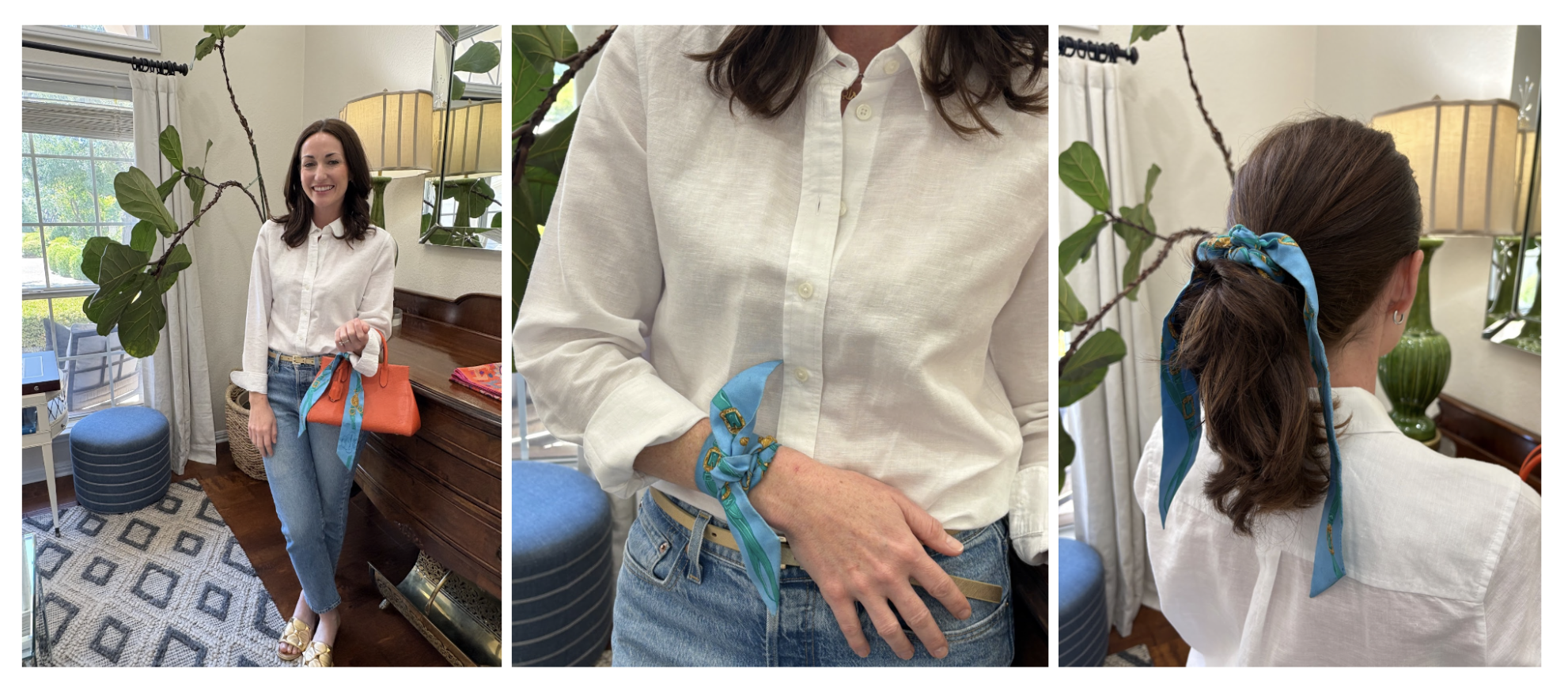 Silk Scarves are the ultimate sophisticated accessory for me. It’s a touch of elegance without being over the top. You can have such a simple outfit and if you add a silk scarf then it just really takes your look to the next level.